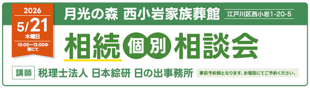 5/4(月・祝日)月光の森 南小岩家族葬館(JR総武線「小岩駅」から徒歩7分)