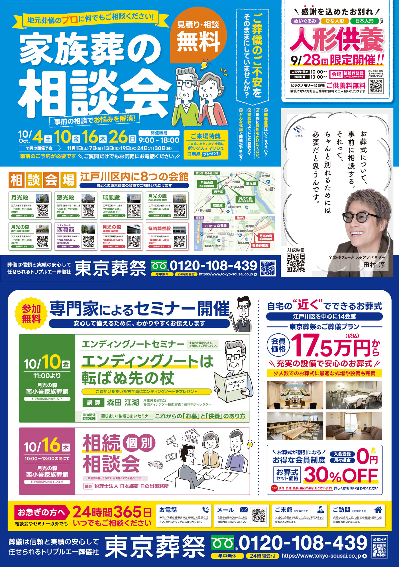 【江戸川区】10/4(土)10(金)16(木)26(日)家族葬無料相談会 開催のお知らせ
