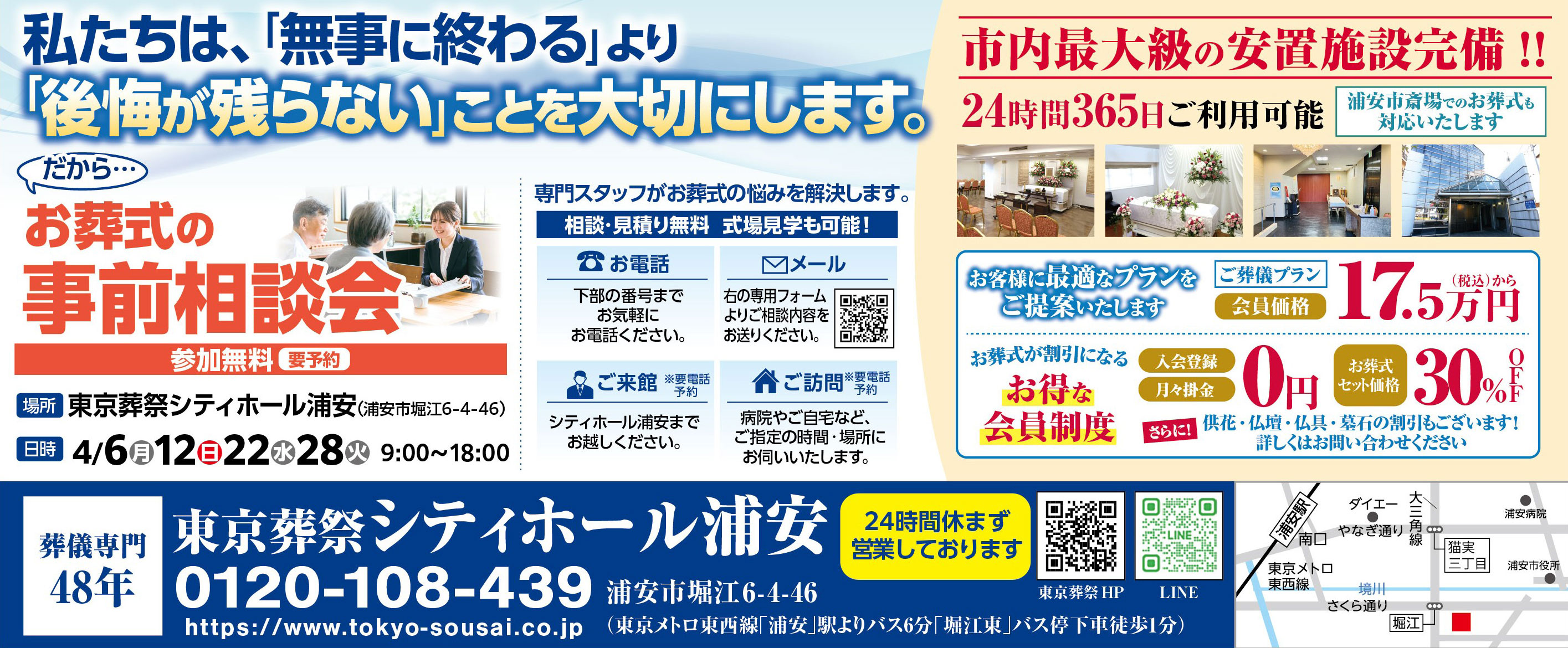 【シティホール浦安】4/6(月)12(日)22(水)28(火)家族葬無料相談会 開催のお知らせ