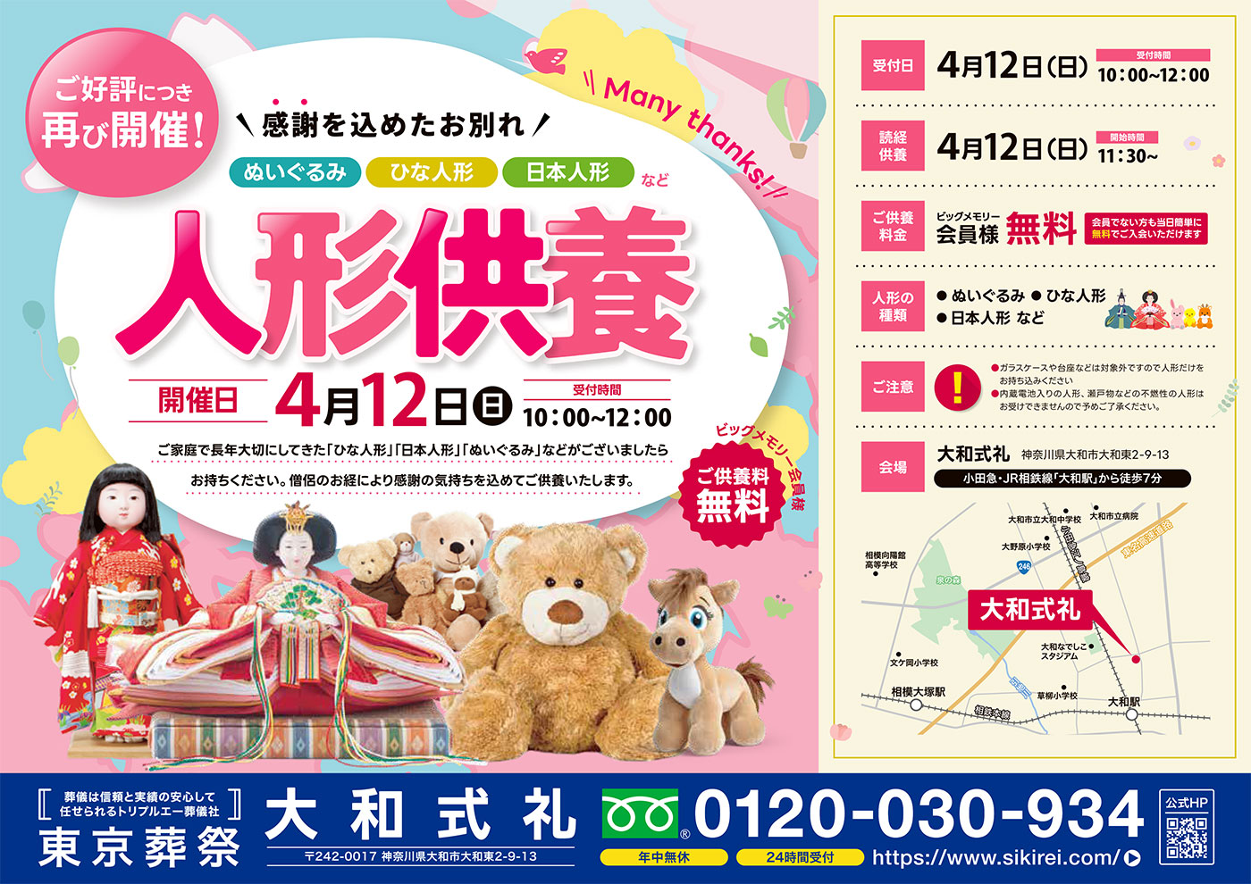 【大和式礼】4/12(日)人形供養をを行います
